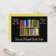 Eine Einladungskarte für den Verkauf von Büchern aus zweiter Hand mit niedlichen und farbenfrohen Büchern in einer virtuellen Bibliothek und anpassbarem Text.