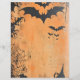 This vintage-inspired Halloween scrapbook paper features a rustic orange background and silhouetted black bats in flight. The junk journal-style backdrop adds nostalgic charm, capturing a classic spooky vibe. It's a festive yet haunting setting for showcasing Halloween photos and memories. The reverse side features a complementary solid orange, perfect for layering or adding warmth to your Halloween pages.