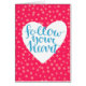 Bürstenbeschriftungszitat folgen Ihrem Herzen am rosa Aquarellhintergrund. Vektorrosa Kartenentwurf mit moderner Typografie. | Bigstock® - alle Rechte vorbehalten.