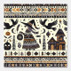 Folk Art Black Birds Pumpkins Hexenhaus Spuk Tapete