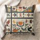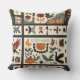 Dieses Kissen zeigt ein von Volkskunst inspiriertes Muster mit Herbst- und Naturmotiven, die in rustikalen Patchwork-Blöcken angeordnet sind. Pumpkins, Eichenfische, Blumenzweige und Vögel - einschließlich eines raven und faszinierenden Vogels - tauchen überall neben Sternen, Diamanten und Herzakzenten auf. Das Muster wurde im Stil von Appliqué und Stickerei erschaffen und verwendet warme Erdtönen in Orange, Braun, Rot, Grün und Creme, die den Geist des Herbstes wecken. Ideal für die Dekoration von Bauernhäusern, primitiven amerikanischen Stil, Erntezeit-Kunsthandwerk und rustikale Volkskunst-Liebhaber.