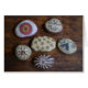 Auf dieser Grußkarte befinden sich bemalte Flusssteine, die Symbole und Entwürfe der amerikanischen und Folklorekunst zeigen.