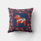 Folk Art Red Swedish Dala Horse and Pattern Kissen