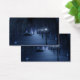 Ein schneebedeckter Weg, der sich in einer dunklen Winternacht durch den Birkenwald schlängelt. Der Weg ist von Laternenpfählen gesäumt, die ein silberblaues Glühen verleihen, aber im Schatten sind die Formen, wie kleine Lichter aus Märchen, hell und verleihen dem Reisenden den Weg. In der Ferne leuchtet der Lavendel einer geheimnisvollen Ansammlung des Waldes den kalten Himmel.