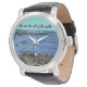 Diese Uhr zeigt ein wunderschönes Foto des Atlantischen Ozeans sowie einen ermutigenden und aufregenden Bibelverse.