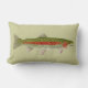 Pillow mit einer Regenbogenforelle auf einer Seite u. einer Bachforelle auf der anderen Seite. Grafik ist vom ursprünglichen Künstler der Aquarellstudien von Natur aus, Glace Thom.