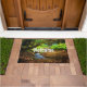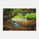 Eine willkommene Tür mit einem hellen grünen Wald mit einer hübschen gewundenen Bucht. Die braunen Blätter bedecken den Waldboden und bilden einen schönen Kontrast zu den üppigen Grünpflanzen dieser zauberhaften Wälder.