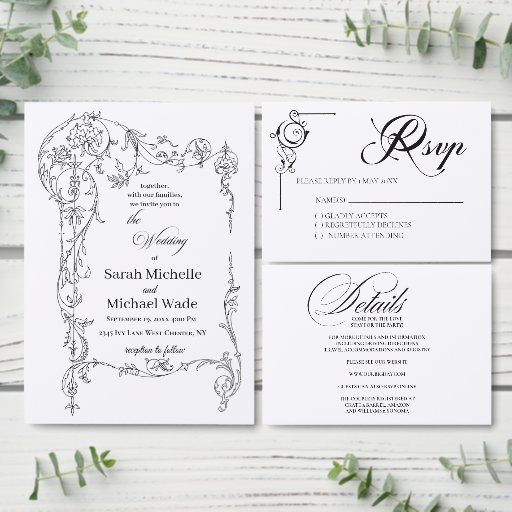 Floral Frame Calligraphy Wedding invitation suiteDesignt von Phyllis Waugh
