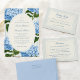 Eine elegante und elegante Empfang-Gehäusekarte mit prächtigen blauen Streifen als Hintergrund und eleganter, zeitloser Typografie.