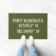 Längen- und Breitengradkoordinaten für die Installation der Armee in Fort Huachuca, Stencil im Stil von Sierra Vista Arizona auf armeengrünem Hintergrund.