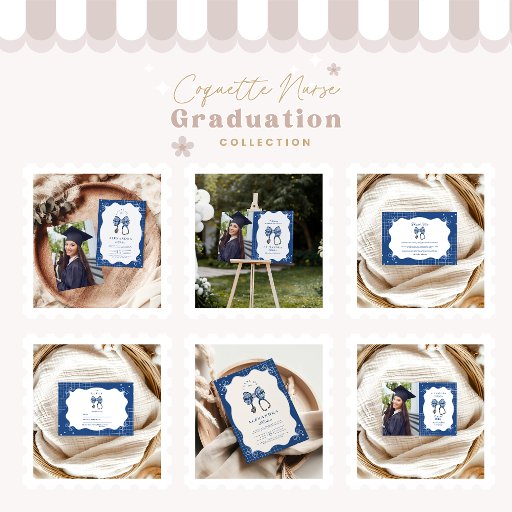 Foto Blue Toile Bow Nurse School Grad Einladung