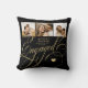 Elegante klassische Imitate goldene romantische Kalligraphie-Skript verlobten Paar Foto Collage, Name und Verlobung Datum personalisierte schwarze Wurfkissen.