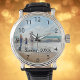 Uhr, Vintage Männeruhr mit schwarzem Lederarmband