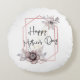 Rosa und graue florale Mutter Tag Personalisiertes Foto rund Kissen. Ein tolles Geschenk für Mama. Fügen Sie Ihr Foto auf die Rückseite des Kissens.