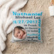 Ehren Sie die Geburt Ihres Babys mit diesem personalisierten Andenken, das mit Fotografie abgeschlossen wird. Gedenken Sie diesen ganz speziellen Tag. Dieses Geburtsstatistik Throwkissen gesteht Ihnen zur Anzeige ein Foto zusätzlich zum Namen Ihr Kindes, Geburtsdatum, Zeit der Geburt, Gewicht und Länge zu. Sie können die Namen jener stolzen Eltern auch hinzufügen. Vervollkommnen Sie für die junge Mutter oder den neuen Vati. Etwas, das sie für immer hüten. Auftrag heute.