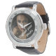 Uhr, Vintage Männeruhr mit schwarzem Lederarmband