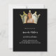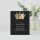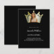Ein schwarzer Hintergrund. Personalisieren und fügen Sie einen Namen und Party-Details hinzu. Fügen Sie dem kronenförmigen Rahmen ein Foto hinzu. 1 Blatt = 1 Einladung mit Druckkante bis Kante.