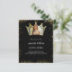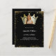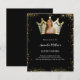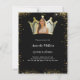 Schwarzer Hintergrund, mit goldenem Imitat verziert.. Glitzer. Personalisieren und fügen Sie einen Namen und Party-Details hinzu. Fügen Sie dem kronenförmigen Rahmen ein Foto hinzu. 1 Blatt = 1 Einladung mit Druckkante bis Kante.