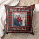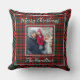 Foto Rustikales Weihnachten Kariertes Kissen. Moderner, roter und grüner Weihnachtsfeiertag Kariert mit personalisiertem Familiennamen.