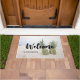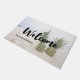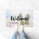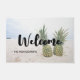 Begrüßungstürmatte mit Foto eines Ananas, das auf einem Sandstrand sitzt.