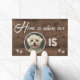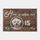 Foto von Home is Where My Dog Is Personalized Cute Custom Welcome Mat This cute and inspirational design feature the quote "Home is where my [your pet's face] is" is in modern and trendy typography, flank ed with black pawprints, wir sind falsch wood background. This is a great gift for the dog owner who loves their dog.