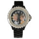 Schwarze Damen Email Strassuhr