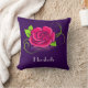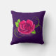 Eine einfache Abbildung einer rosa Rose mit grünen Blütenblättern und einem Wirblen Stamm. Lila Hintergrund. Passen Sie Ihren eigenen Namen oder Text an.