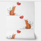 Fox & Red Heart Balloon Design Wallpaper. Ideal für ein Kinderzimmer, Kinderzimmer oder Spielzimmer.