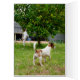 Im Hinterhof spielen sind zwei Fox Terrier, einer springt in den Orange Tree, der andere hat etwas Interessantes Gepunktet, http://www.zazzle.com.au/cardconnection