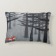 Ein wilder roter Fuchs steht unter Bäumen in einem dunklen Wald. Ein Landschaftsbild für Tiere, Natur und Wildtiere.