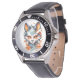 Dieses faszinierende T - Shirt-Design in ein atemberaubendes Uhrengesicht verwandeln, das Natur und Kunst zelebriert. Die lebendige Fuchsabbildungen mit ihren durchdringenden orangefarbenen Augen und dem blau, orange und weiß blendendem Pelz schaffen einen unvergesslichen visuellen Effekt. Die herbstlichen Blätter und die dynamischen Orangenbläser verleihen dem Design einen saisonalen Charme. Diese Armbanduhr wird nicht nur ein funktionales Accessoire, sondern auch ein Miniaturstück tragbarer Kunst sein.