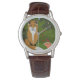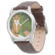 Diese wunderschöne, braune Lederrippenuhr mit wunderschön illustriertem Red Fox (mit Kardinal und Wassermelone) ist ein einzigartiges Stück für Fox-Liebhaber auf der ganzen Welt!