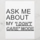 Frag mir von meinem "Ich kümmere mich nicht"-Modus. Witziger Text.