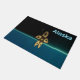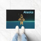 Ein braunes Fraktal-Bild, das auf einen hochstilisierten Inuit-Jäger hinweist, der traditionelle Pelzkleidung trägt und einen Harpunen mit Elfenbeinkopf trägt. Das Bild ist auf einem Hintergrund überlagert, der den dunklen polaren Winter darstellt. "Alaska" erscheint in blau-weiß.