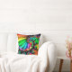 Dieses bunte Kissen kennzeichnet meine Fraktalkunstspirale "melodischen Regenbogen" mit den roten, orange, gelben, grünen, blauen, lila, rosa und schwarzen Farben.