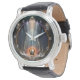 Uhr, Vintage Männeruhr mit schwarzem Lederarmband