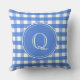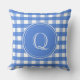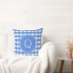 Ein schönes französisch-blaues Gingham-Muster ist der Hintergrund für einen großen Monogramm-Initial. Beide Seiten sind identisch, Sie müssen also nur das erste einmal hinzufügen. Das stilvolle Design eignet sich besonders für eine Sonnenterrasse oder ein Wohnzimmer.