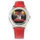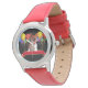Kinderuhr aus Edelstahl mit rotem Lederarmband