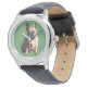 Uhr, Vintage Männeruhr mit schwarzem Lederarmband