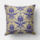 Französisches Blau-Damast-Muster mit Gold Kissen