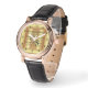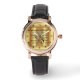 Französisches Horn~kurvte Blatt Musik~Gold Hinterg Armbanduhr