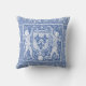 Elegantes blaues und weißes Kissen mit den Engeln, die ein Wappen mit drei Fleur de Lys tragen. Von einem mittelalterlichen Stickerei- oder Tapisseriemuster.