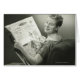 Frau sitzt im Sessel, liest Zeitung, lächelt, (B&W) | George Marks | AssetID: 57539557