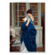 Eine Frau in blauem Gewand hat das Party für die Bibliothek verlassen.