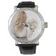 Uhr, Vintage Männeruhr mit schwarzem Lederarmband