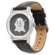 Uhren aus rostfreiem Stahl mit schwarzem Gesicht und schwarzem Lederriemen mit Halloween-Gespensterprint. Passen Sie diese Uhr an oder kaufen Sie, wie es ist.