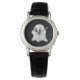 Uhr, Klassische Damenuhr mit schwarzen Lederarmband