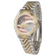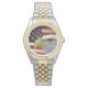 Die klassische Armbanduhr dieser Frauen wird in zweifarbigem Gold und Silber gezeigt. Hat ein atemberaubendes Bild unserer amerikanischen Freiheitssymbole als Gesicht dieser Uhr. Kehren Sie aus zweiter Hand. Passen Sie diese Uhr an oder kaufen Sie, wie es ist.