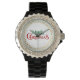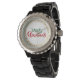 Diese Feiertage Frauenuhr ist schwarz mit Nashörnern um das Gesicht mit einem Urlaub Frohe Weihnachtsabdruck gezeigt. Farbe Schwarz Passen Sie diese Uhr an oder kaufen Sie, wie es ist.