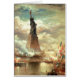 Vintage Illustration des Freiheitsstatuen stehendes hohes gegen die Wolken und unter einem Seekampf
